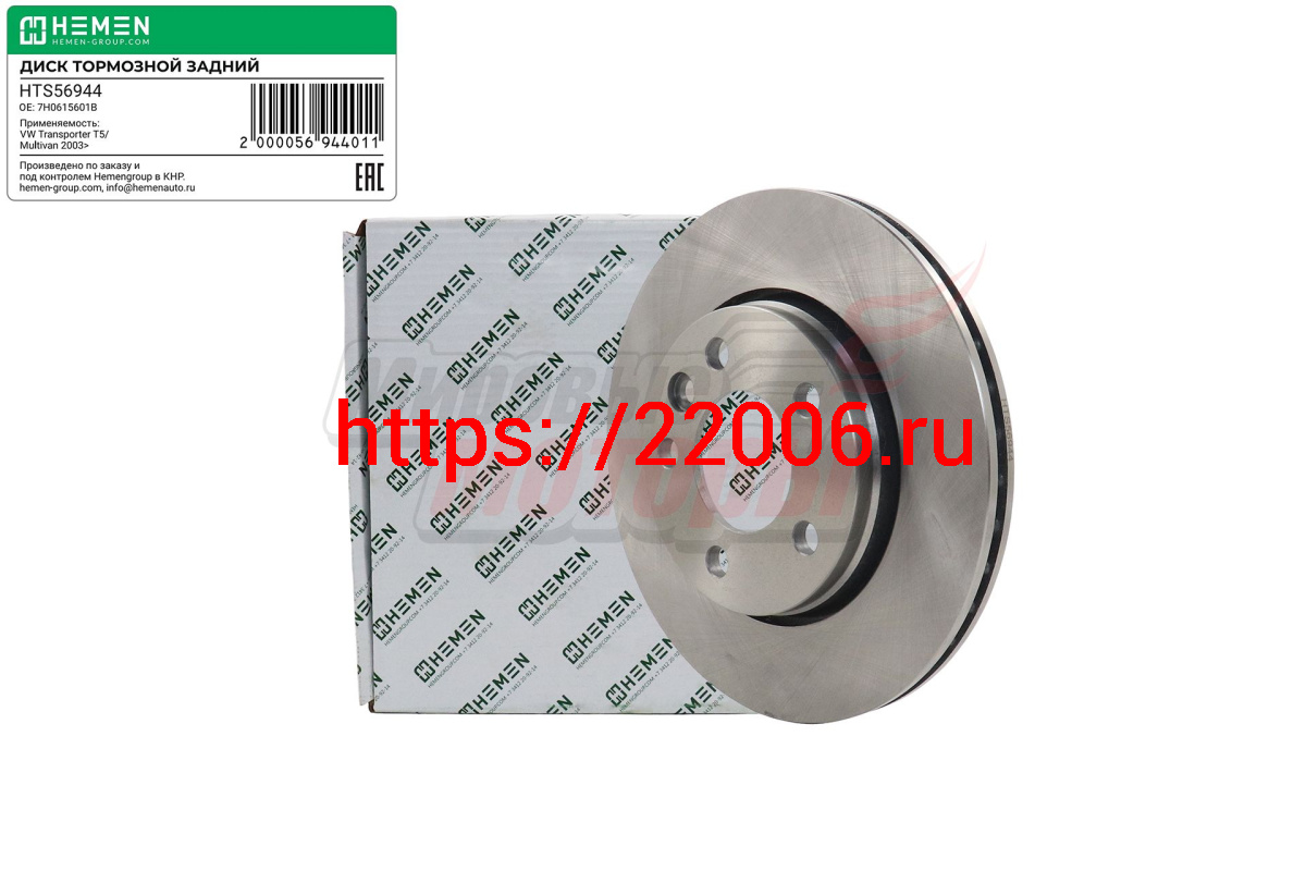 - Диск тормозной задний VW Transporter T5/Multivan 2003> D=294 мм (HTS56944) в Тавде недорого