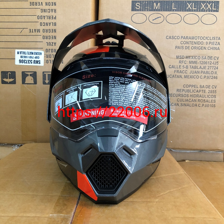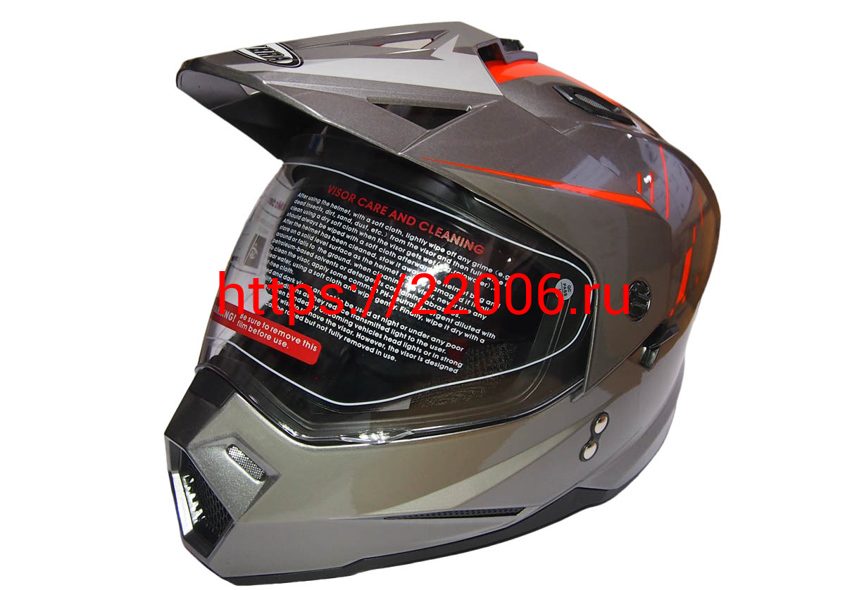 - Шлем туринг (кросс со стеклом и очками) COBRA JK802, серо-оранжевый, размеры M в Тавде недорого